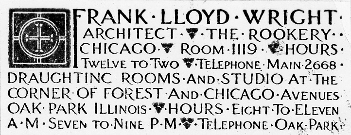 Figure 1. Announcement of Wright's architectural practice, 1898 © 2011 Frank Lloyd Wright Foundation / Artists Rights Society (ARS), New York.