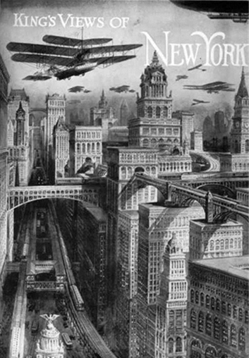 Figure 1. Richard Rummell, delineator, "King's Views of New York" cover plate illustration for King's Views of New York, published by Moses King, 1911.